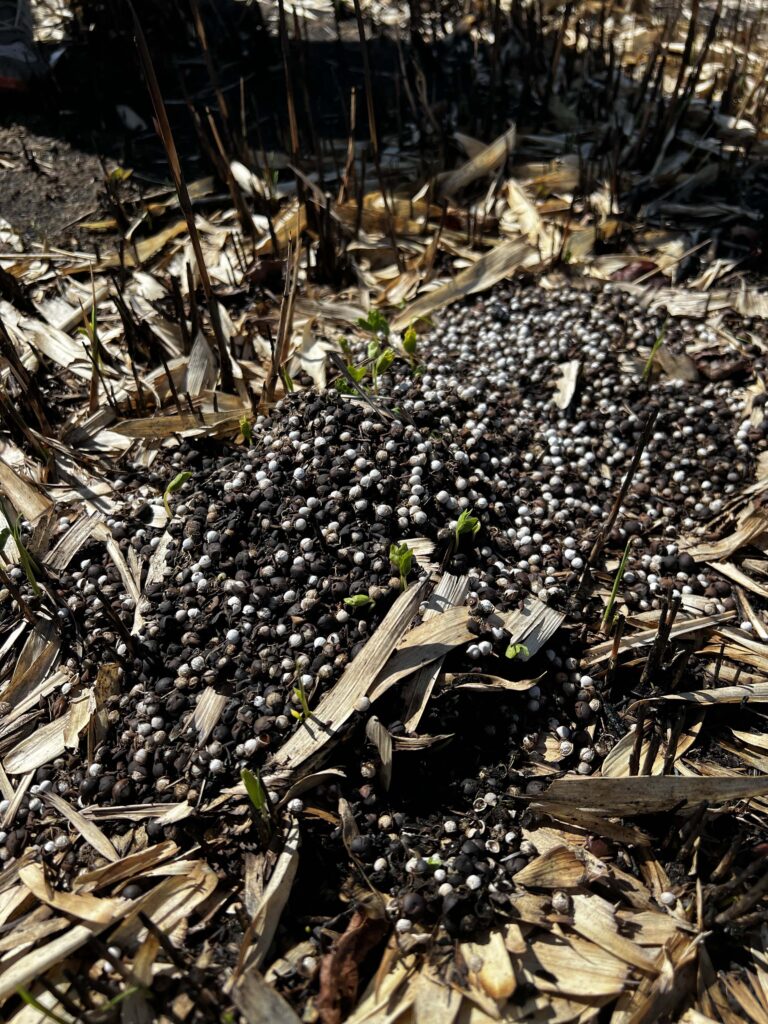 大量のため糞が尾根にあるのを確認できた。木の実を食べて暮らしているのか、糞からどんぐりの木が芽吹いていた。